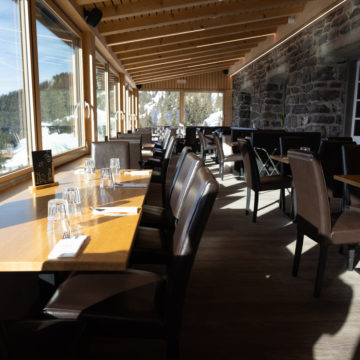 Le restaurant intérieur de 150 places dispose d’une salle à manger panoramique de 80 places ainsi que d’une salle de banquet attenante d’également 80 places. Les salles à manger ont été entièrement rénovées en 2020.